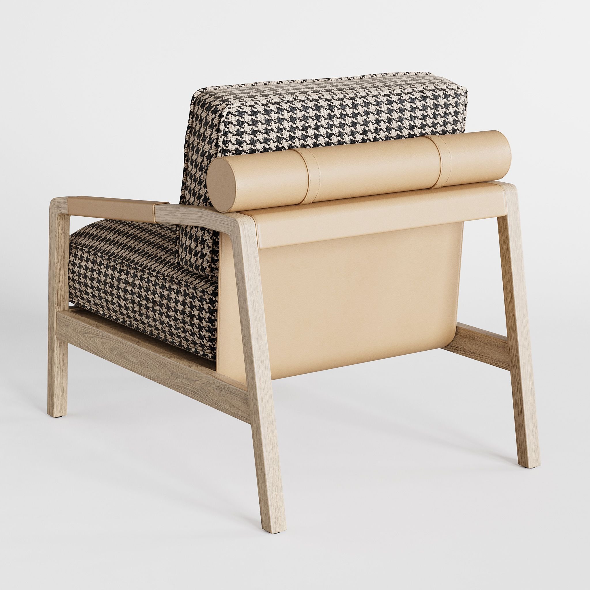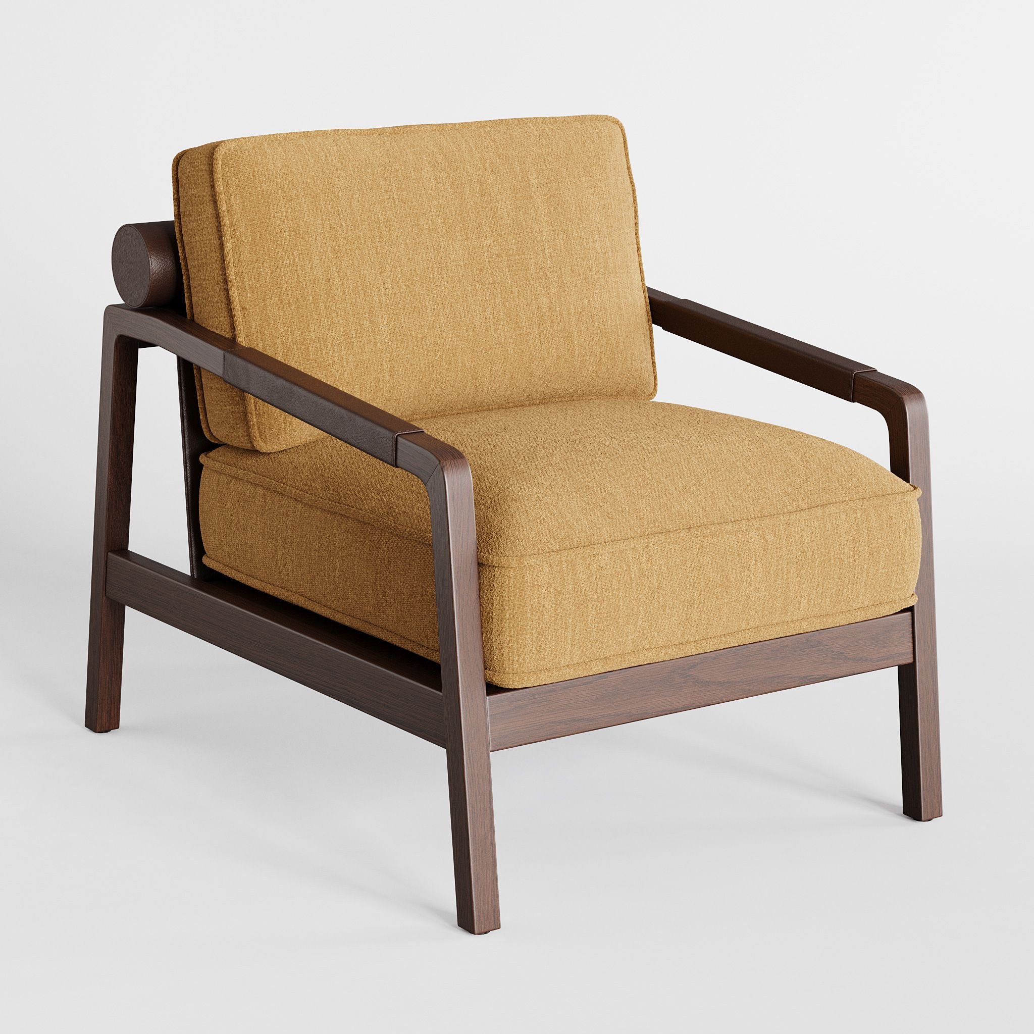 - 柔らかなファブリックとレザーの布張りアクセントチェア