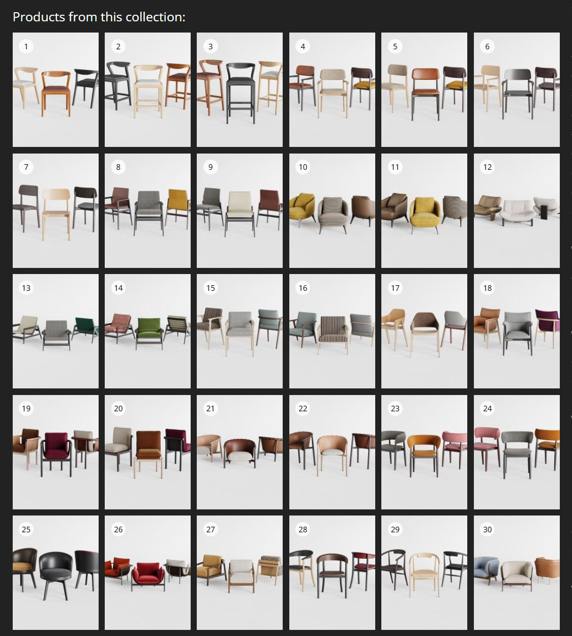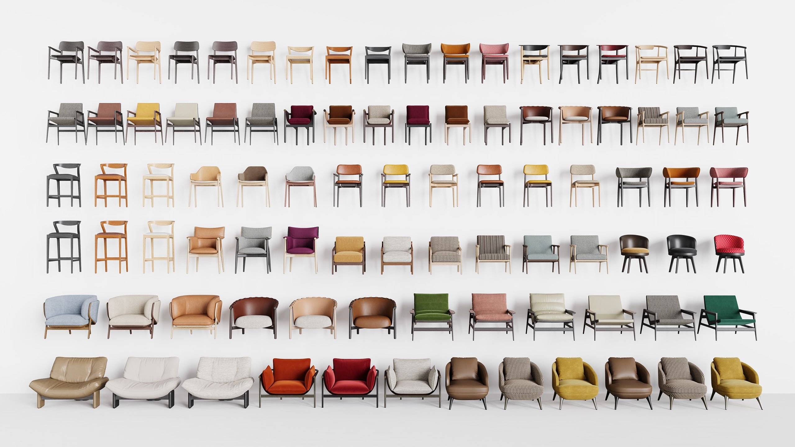 Archmodels Vol. 305 – ディテール椅子 では、スタイリッシュなチェア 30セットをお届けします。スカンジナビア風のダイニングチェア、モダンなバースツール、エレガントなラウンジシートなど、幅広いスタイルを網羅できるよう厳選したモデルを揃えています。各アイテムは3種類のマテリアルバリエーションが用意され、PBRマテリアルシステムを用いて構築されています。