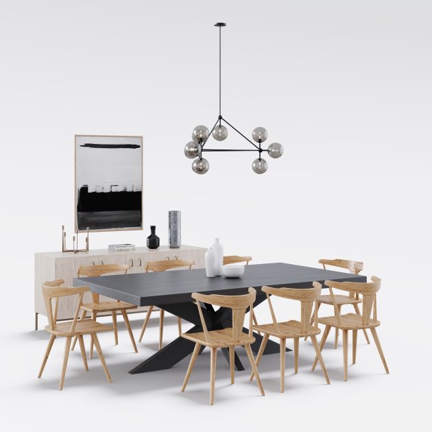 ボーナス: ダイニングルームのインテリアシーンも付属します。シーンは 3ds Max(V-Ray / Corona) および Blender(Cycles / V-Ray) 用としてのみ用意されています。