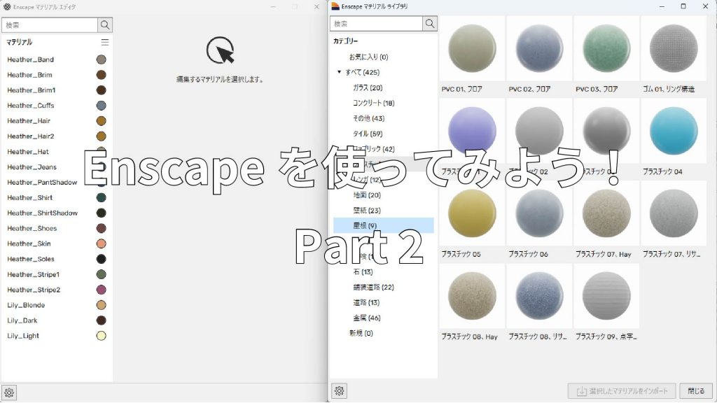 今回は、Enscapeでレンダリングするにあたって、オブジェクト割り当てる各種マテリアルの作成や設定について、見た目や各マテリアルごとの違い、特性と合わせてご紹介したいと思います!