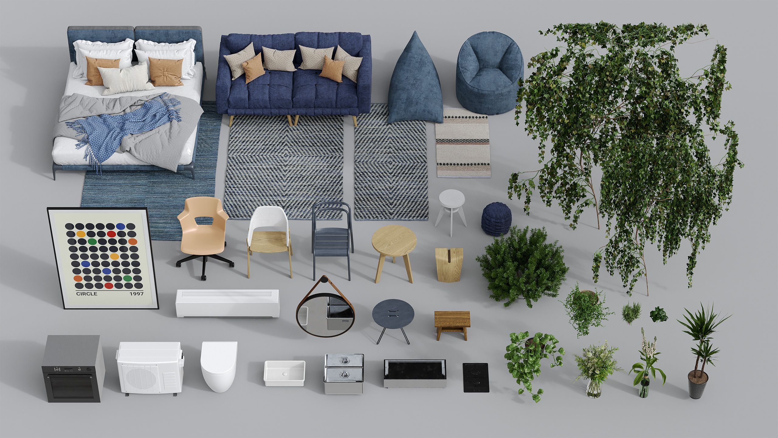 Archinteriors vol. 71 は、モダンなアパートメントのインテリアをフィーチャーした、直ぐに使える3Dシーン素材集です。この包括的なコレクションには、家具、装飾品、植物など 250種類以上 の高品質でカスタマイズ可能な3Dモデルが含まれており、リアルなビジュアライゼーションを実現します。モジュール設計とPBRメタリック/ラフネスシステムにより、正確なマテリアル表現と容易な適応性を実現します。正確なスケール設定とすぐに使用できるため、建築家、デザイナー、3Dアーティストの時間と労力を節約できます。Archinteriors vol.71は完成版パックとして入手可能ですが、モデルまたはレイアウトを個別に入手することもできます。