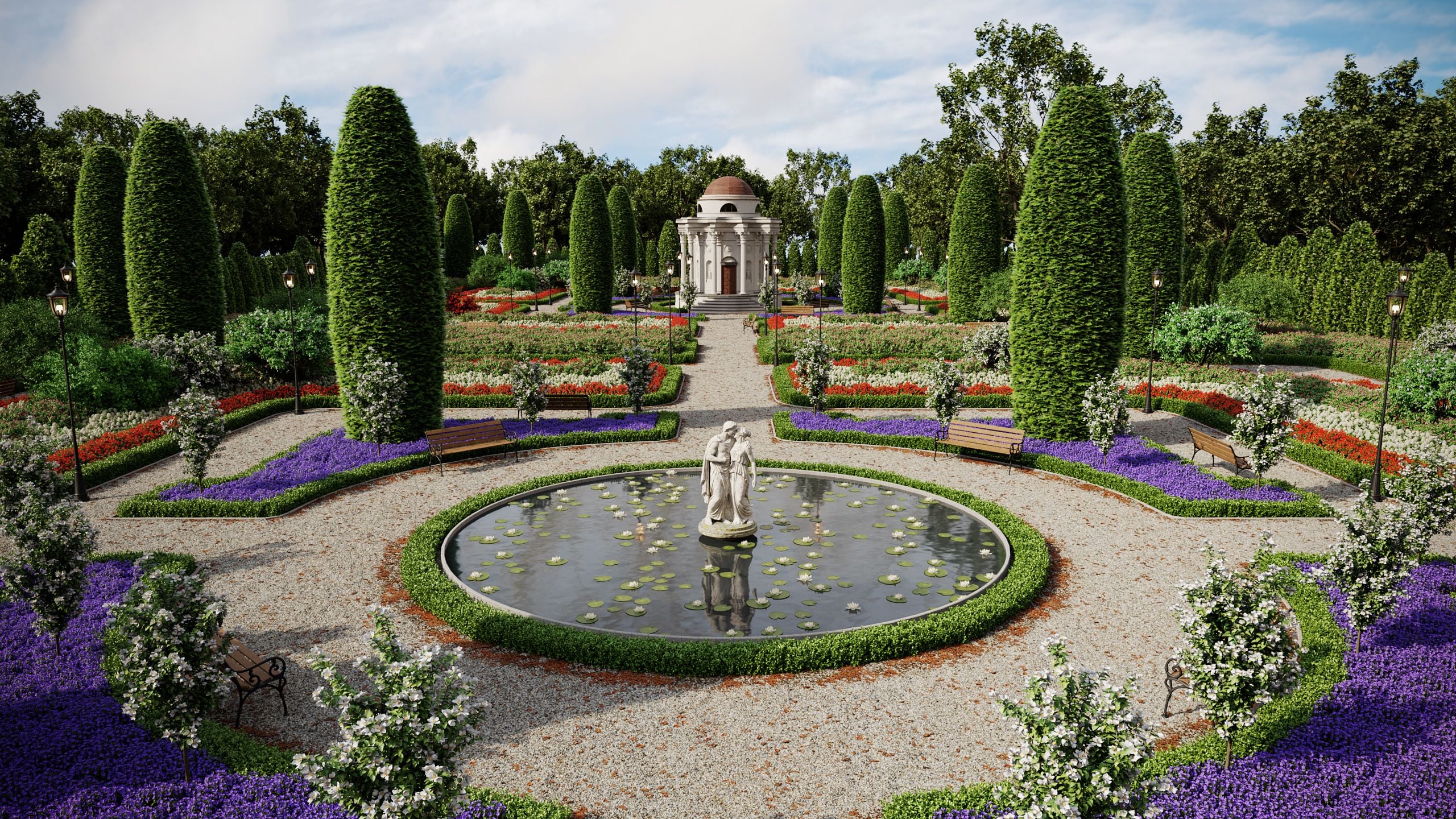 ボーナス: エクステリアガーデンシーンが付属します。シーンは 3ds Max(V-Ray / Corona)および Blender(Cycles)用としてのみ用意されています。