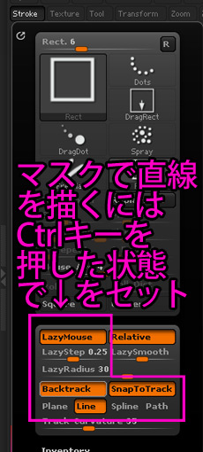 - 方向の設定:スカルプト中にAlphaを回線する事ができます。
